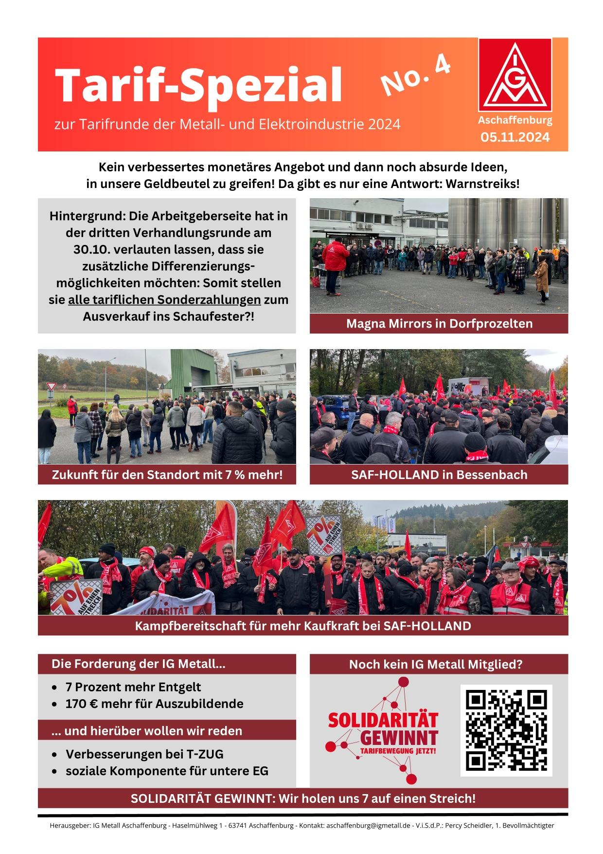 400 Beschäftigte von Magna Mirrors in Dorfprozelten und SAF-HOLLAND in Bessenbach folgten den Warnstreikaufrufen für 7 % und 170 € mehr Ausbildungsvergütung.