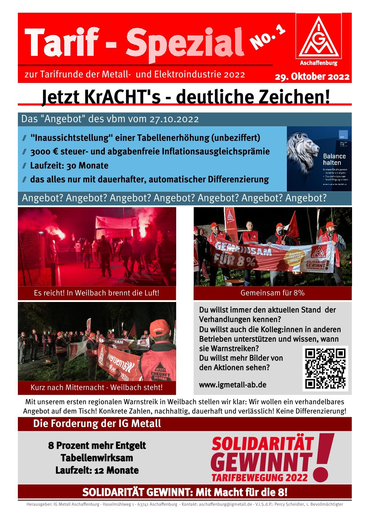 Der vbm bot einen steuer- und abgabenfreien Inflationsausgleich in Höhe von 3000 € an und machte eine „Inaussichtstellung“ einer prozentualen Erhöhung, die aber nicht beziffert wurde. Der vbm möchte eine Laufzeit von 30 Monaten!