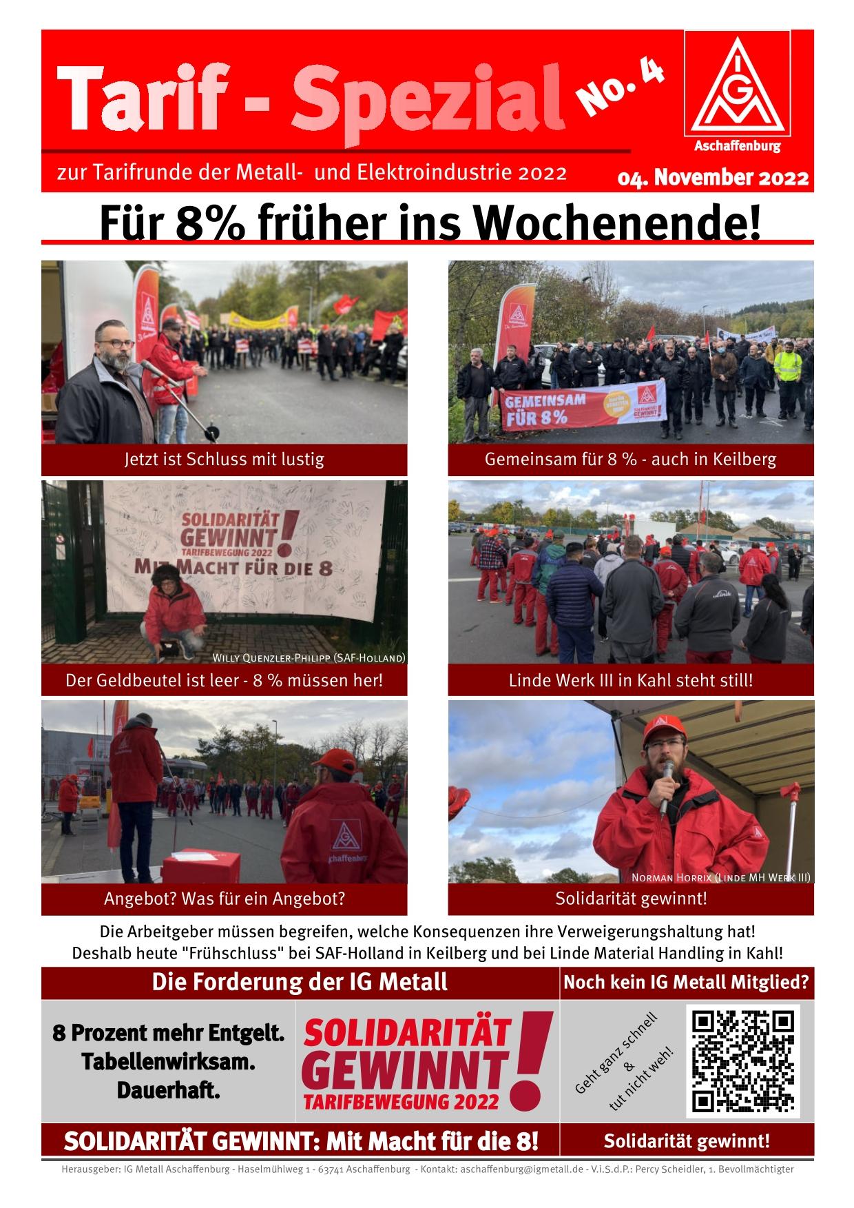 Deshalb - und auch weil die Arbeitgeber wohl sehr klare Signale brauchen um nächste Woche ein vernünftiges Angeobt vorzulegen - wurde auch in Kahl die Arbeit nach dem Warnstreik nicht mehr aufgenommen und die Beschäftigten ginge in den „Frühschluss“.