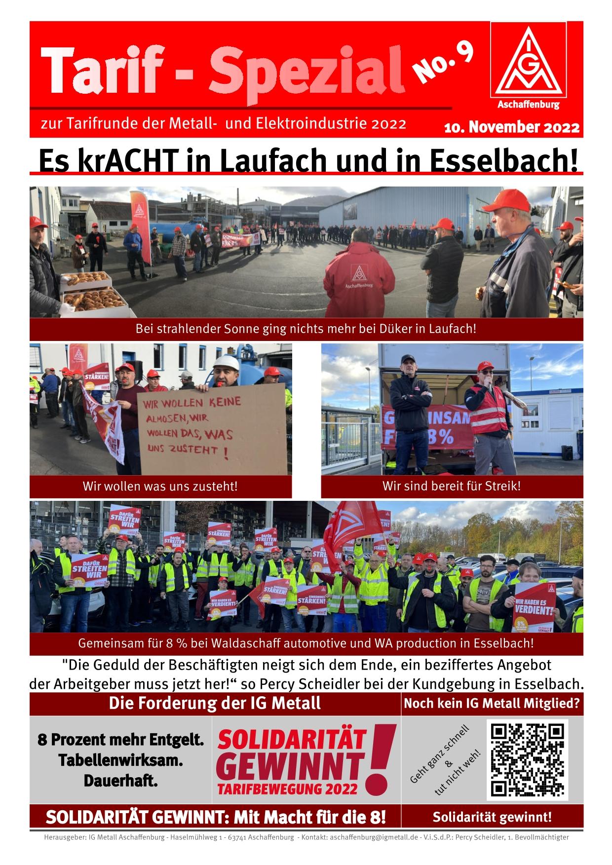 Bei Waldaschaff Automotive GmbH und WA production GmbH in Esselbach legten die Beschäftigten ihre Arbeit ab 13.00 Uhr nieder. Die Produktion für BMW und Porsche am Standort stand bis zum Schichtende der Kolleg:innen still.